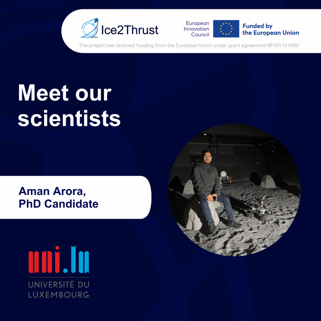On the picture: Aman Arora, PhD Candidate, University of Luxembourg & Ice2Thrust.Space